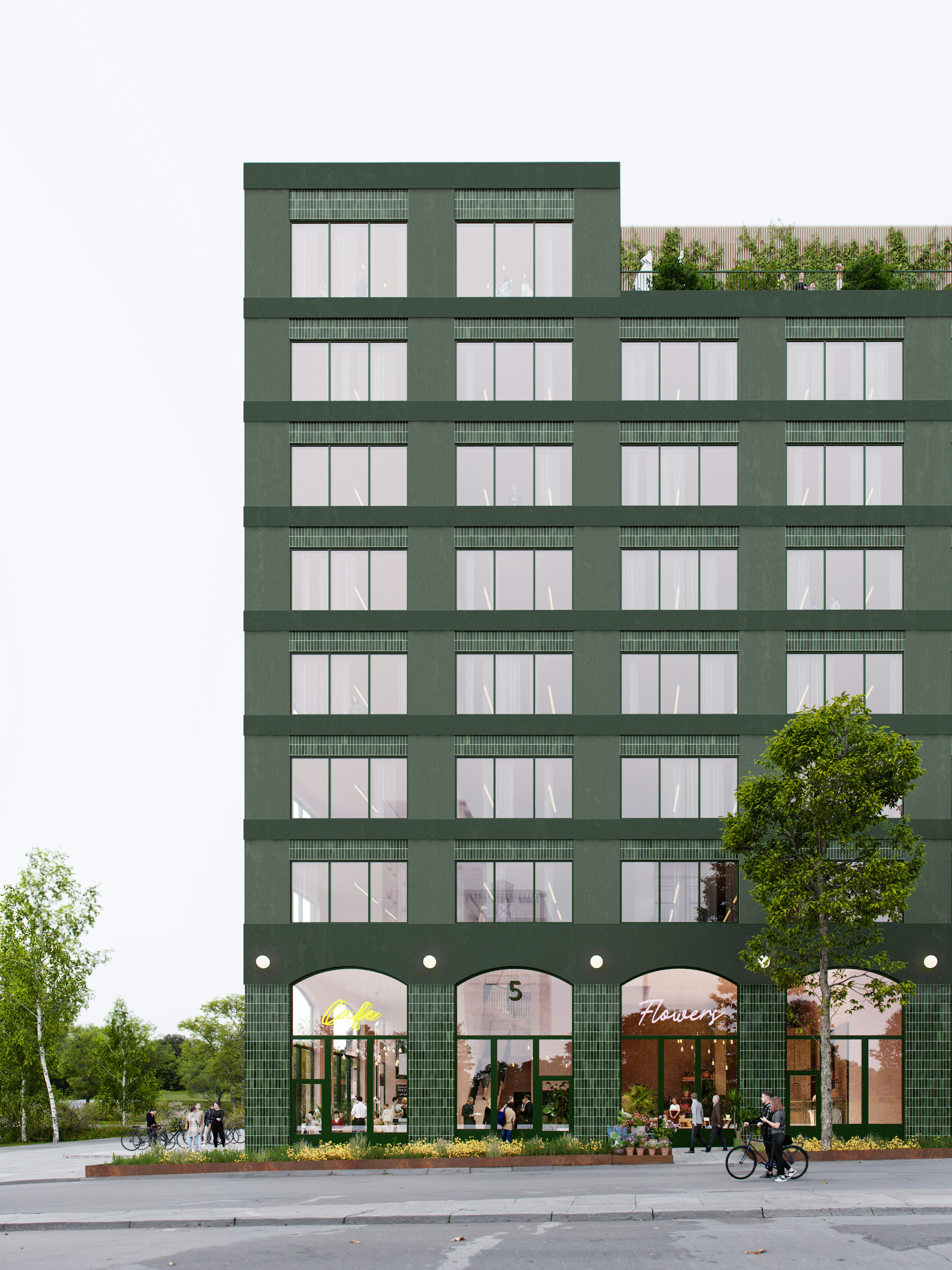 Ett modernt storkvarter med fokus på gatulivet och människan i centrum.